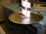 It's a bit heavy (3 feet of 3" Sch 40 PVC pipe weighs a lot!). With no adjustment, I checked out the match using a fancy network analyzer. The return loss on both was better than -10 dB, and more like -14 to -15 dB. Part of the reason the match is so poor is that it was tested sitting on a bench next to me, a shelf, and the rack with the network analyzer, as you can tell from the overall waviness in the return loss curve (particularly look at the Left Hand helix, which was closer to me). Even aggravating this is that the test was done in a shielded room, so the antenna was pointing at the metal ceiling about 1 meter away (although, given that the antenna is CP, the first reflection shouldn't make any difference).