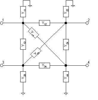 I1 = E1 * ( Y11+Y12+Y13+Y14) + E2 * (-Y12) + E3 * (-Y13) + E4 * (-Y14)