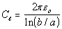 For the coaxial geometry, the capacitance and inductance per unit length are given by: