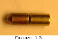 Above (figure 13) is a picture of a key pin and a set pin. These are actually butted up tight to each other. Notice how where they make contact they are rounded and not flat.