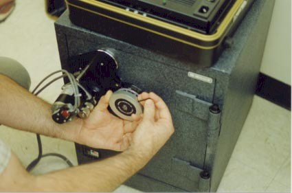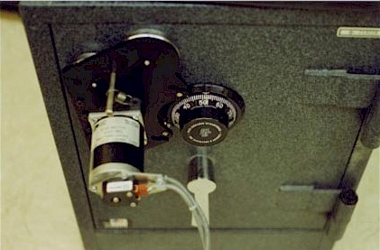 The magnetic base and stepper motor are monted near the dial. The lock shown here is an S&G 6730.