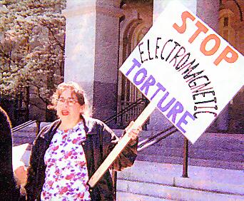 | Three protest signs, left to right: 1. Psychotronic Genocide is the work of the Central Committee Communist Party! Nuremberg-2 Inevitable! 2. SOS! Russia is in Danger of Going Psychotronic 3. No psychotronic weapons! no psychofascism! |