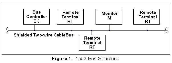 There are only three functional modes of terminals allowed on the data bus: the bus controller, the bus monitor, and the remote terminal. Devices may be capable of more than one function. Figure 1 illustrates a typical bus configuration.