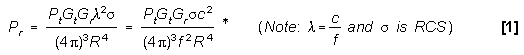 In the last section (Two-way Radar Equation - Monostatic), we had the basic radar equation given as equation [6] and it is repeated as equation [1] in the table above.