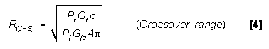 EQUATION FOR THE RANGE WHEN J/S CROSSOVER OCCURS (MONOSTATIC) - The J/S crossover range occurs for the case where J = S, substituting into equation [6] yields: