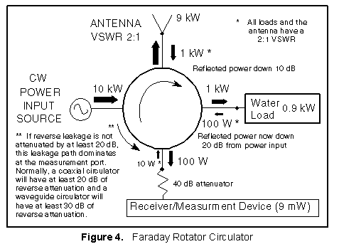 | As shown in Figure 2, if one port of a circulator is loaded, it becomes an isolator, i.e. power will pass from ports one to two, but power reflected back from port two will go to the load at port three versus going back to port one. |
