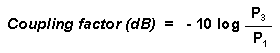 where: P3 is the output power from the coupled port and P4 is the power output from the isolated port.