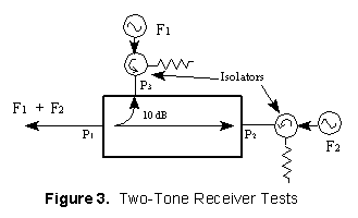 a single line to a receiver for two-tone receiver tests. In Figure 3, one signal enters port