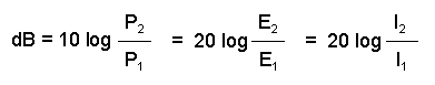 dB = 10 log[(V22/R)/(V12/R)] = 10 log(V22/V12) = 10 log(V2/V1)2 = 20 log(V2/V1)