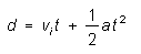 d = distance traveled vi = Initial velocity t = time a = acceleration = "g" |