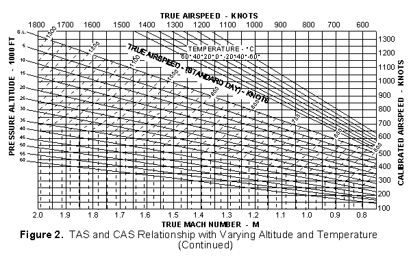 Figure 3 shows a much wider range of Mach numbers. It contains only TAS and Mach, since aircraft generally do not fly above Mach 2, but missiles (which don't have airspeed indicators) do.