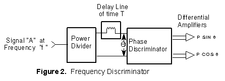 A frequency discriminator uses a phase discriminator and adds a power divider and delay line at the RF input as shown in Figure 2.