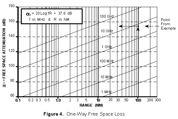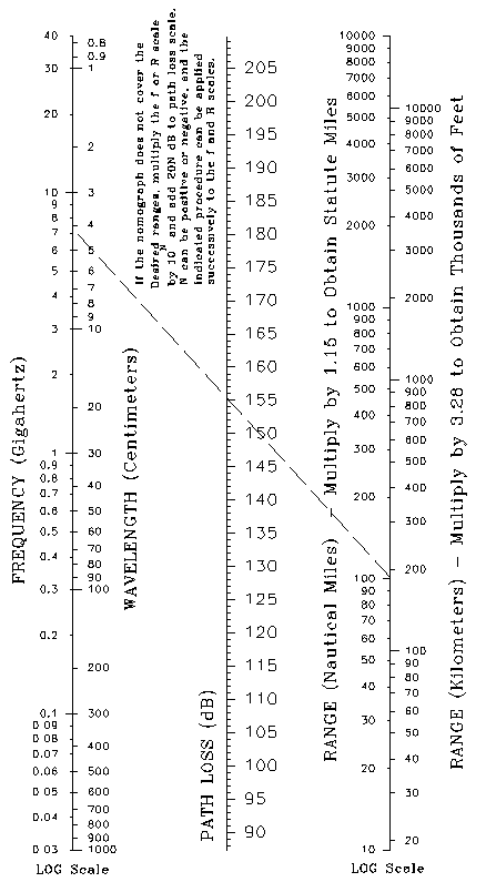 (a) The One-way Free Space Loss graph (Figure 4). Added accuracy can be obtained using the Frequency Extrapolation graph (Figure 5) |