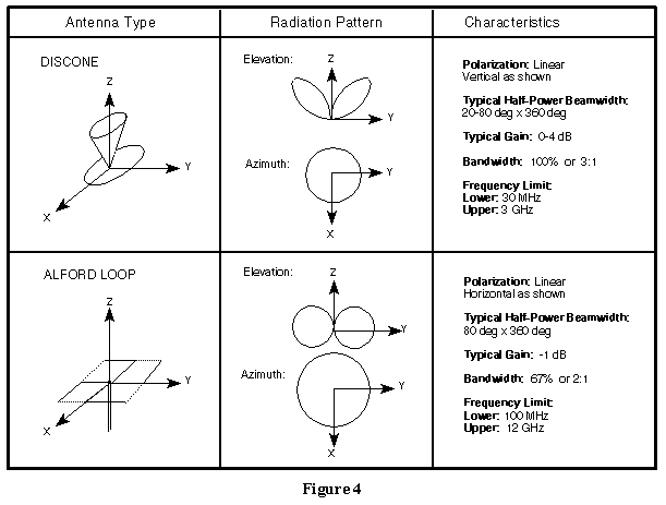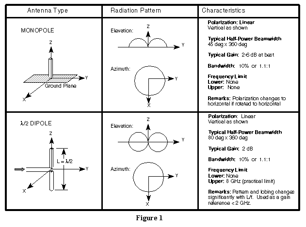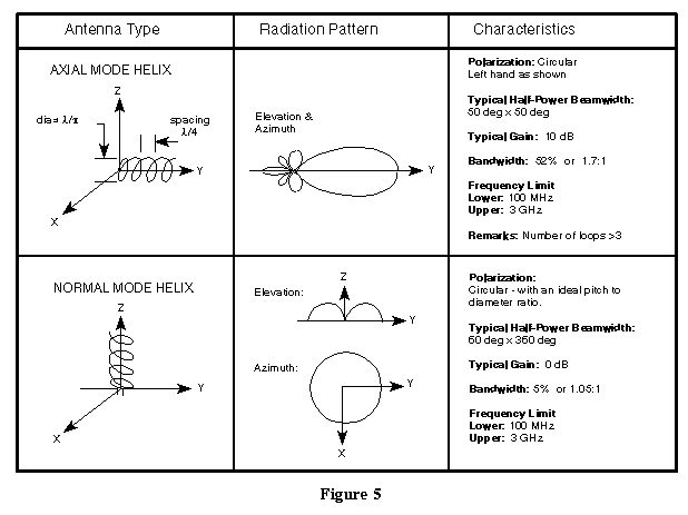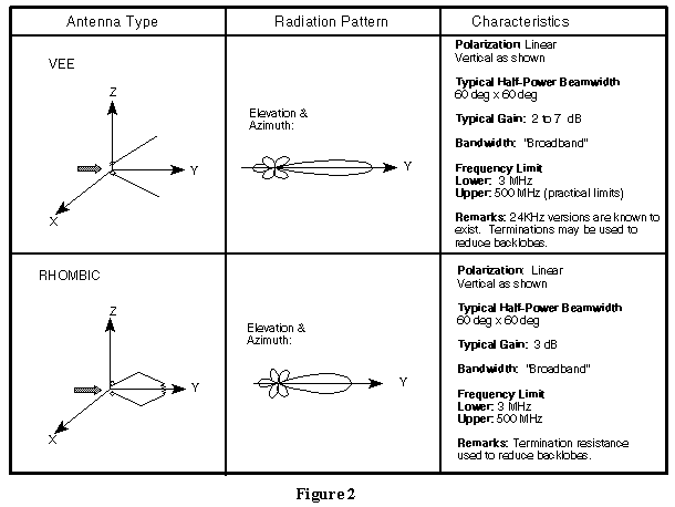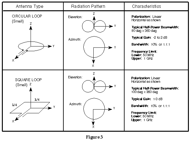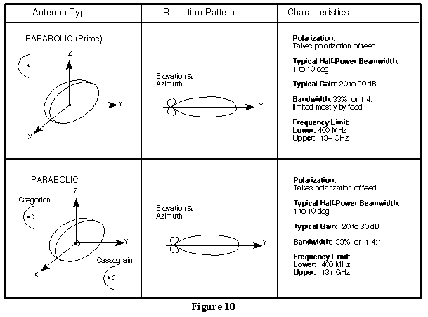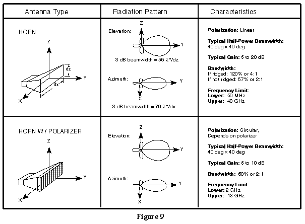 The following lists antenna types. The linked figure shows radiation pattern, frequency limits, polarizations, etc.