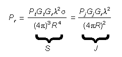 Power (jammer): Equating the received signal return (Pr) in the two way range equation to the received jammer signal (Pr) in the one way range equation, the following relationship results: