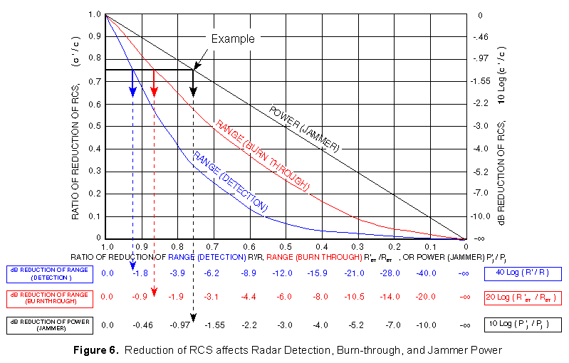 Example of Effects of RCS Reduction - As shown in Figure 6, if the RCS of an aircraft is