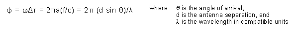 The basic geometry is depicted in Figure 5, whereby a plane wave arriving at an angle is received by one antenna earlier than the other due to the difference in path length.