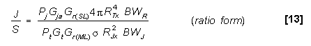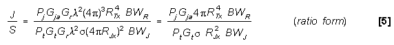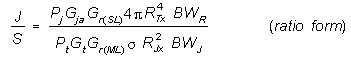 or (in dB):10log J/S = 10logPj - BF + 10logGja + 10logGr(SL) - 10logPt - 10logGt - 10logGr(ML) - 10log |