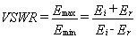 where: Emax = maximum voltage on the standing wave Emin = minimum voltage on the standing wave Ei = incident voltage wave amplitude Er = reflected voltage wave amplitude |