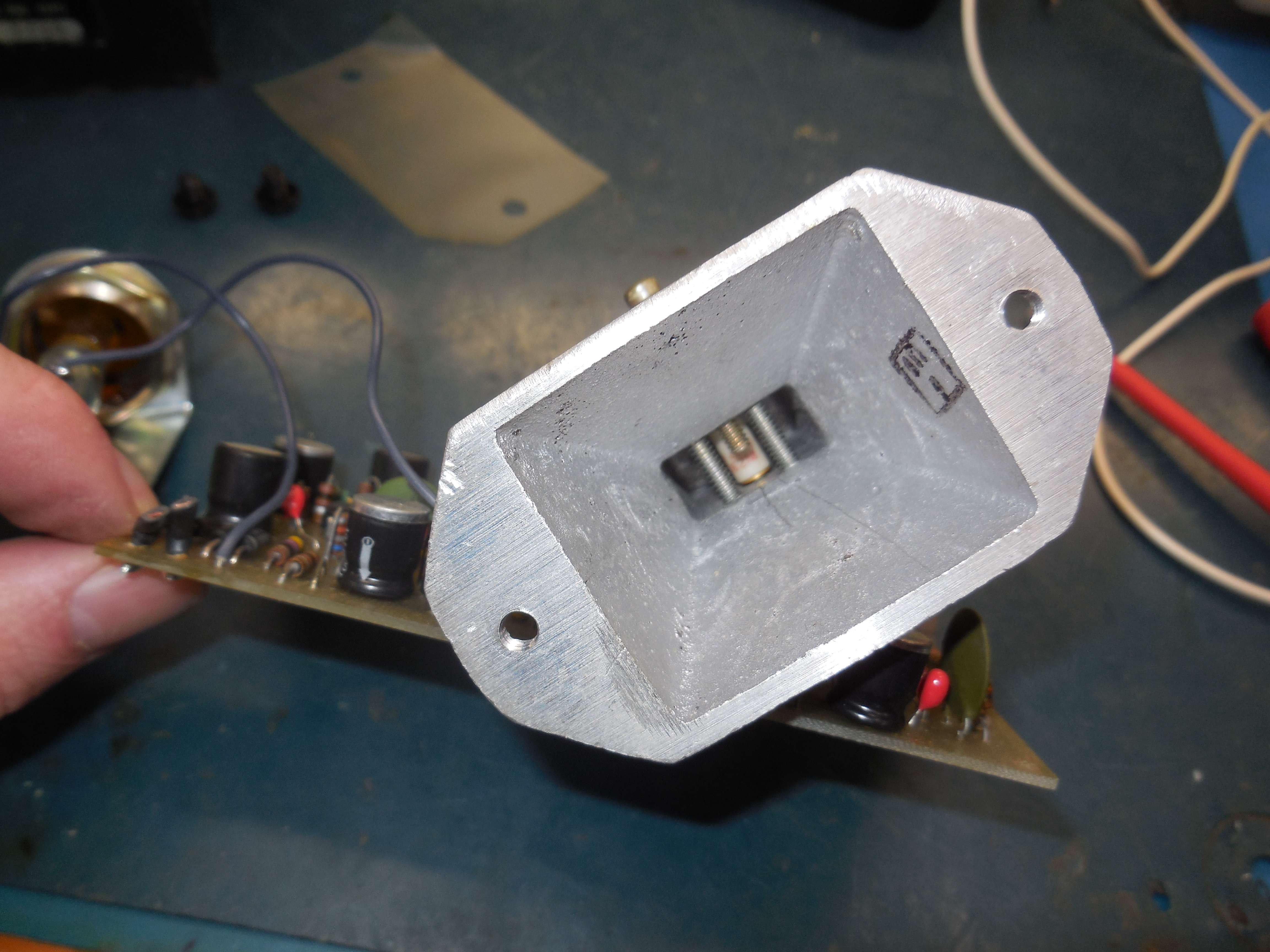 Looking down the horn of a modern radar detector showing the Schottky diode up font.