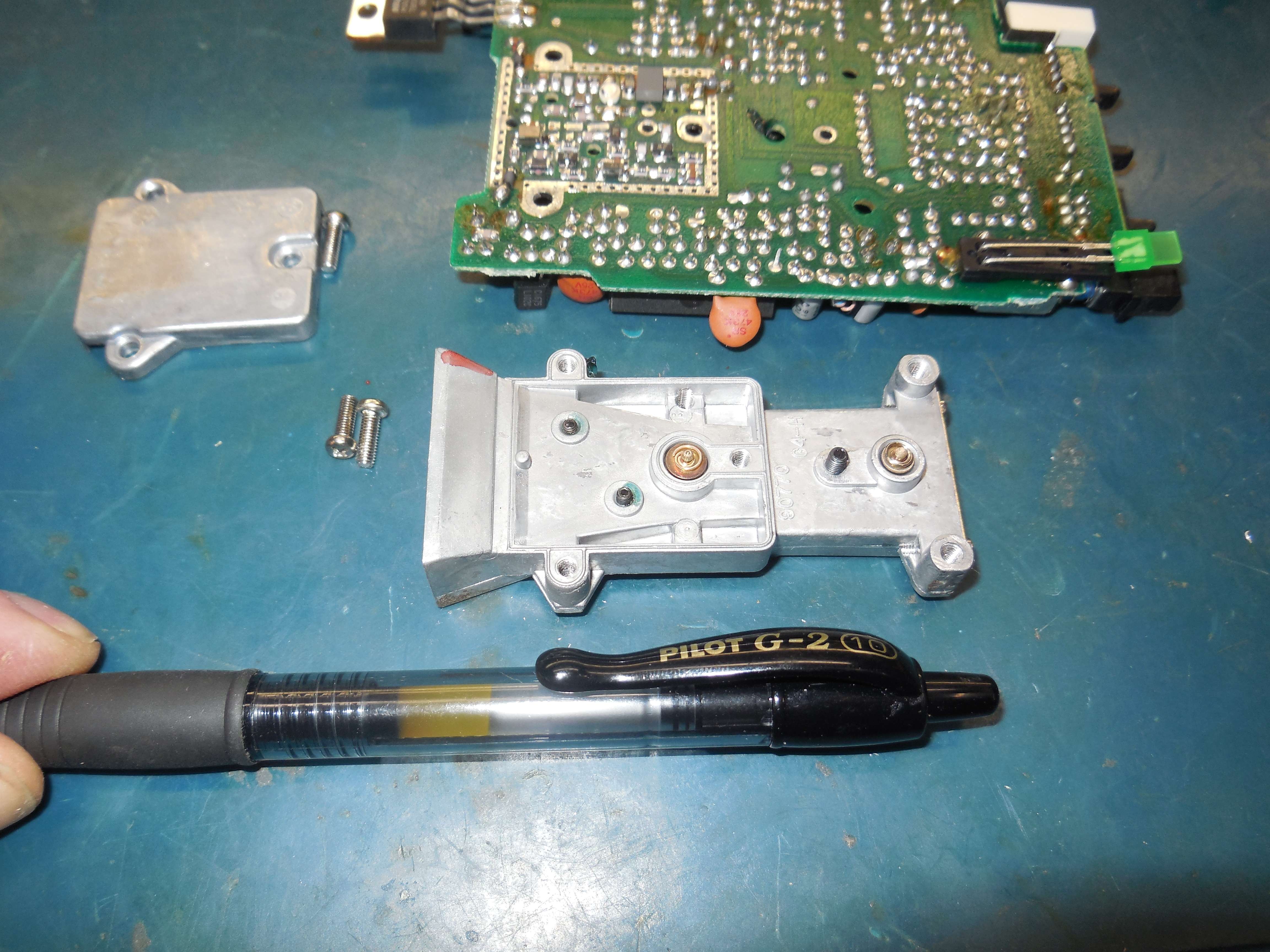 Mixer section on the left, iris plate in the middle, Gunn diode oscillator section on the right.