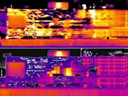 Thermal infrared imaging show how activity in the U.S. embassy's rooftop spying nest significantly reduced from October 24 (top picture) to October 25, after it emerged that the U.S. bugged Chancellor Merkel's phone (ARD Panorama, via The Independent)
