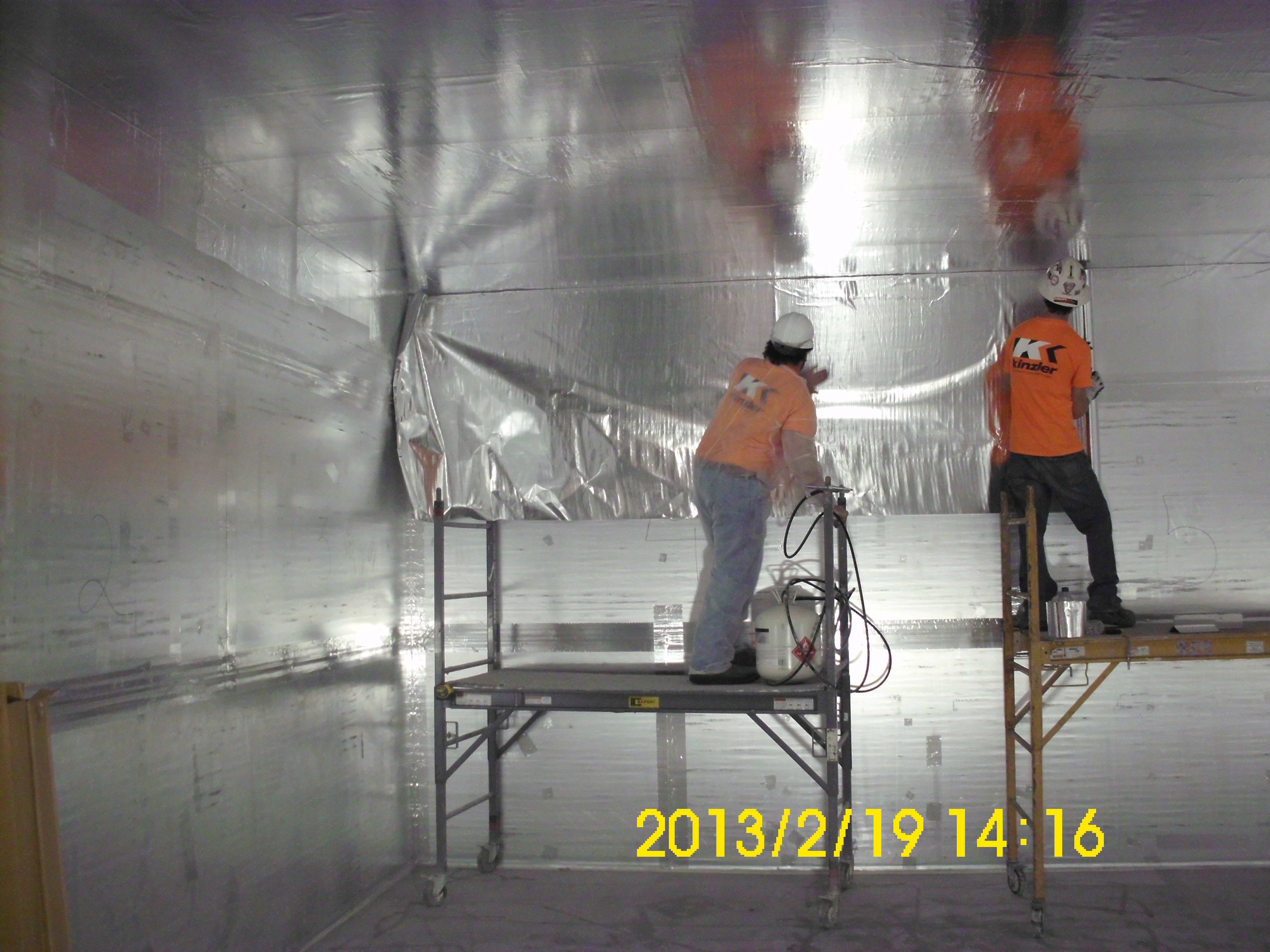 SCIF Barrier is an integral component of a larger acoustical system designed to make certain that secured communications stay SECURED. SCIF Barrier is used as a radio frequency barrier (RF Shielding) when grounded to an electrical system, thereby disrupting electronic surveillance and suppressing data leakage.