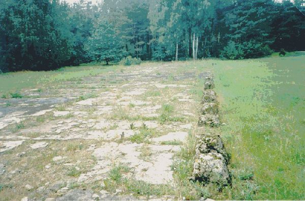 8. Treblinka I. The concrete foundations, on which the barracks stood, can be seen on the camp grounds. © Carlo Mattogno, 1997. |