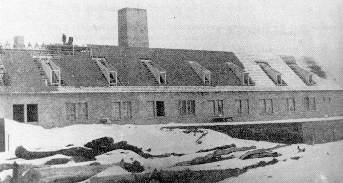 Block 1: One hot air disinfestation installation, manufactured by the Klein corporation for 1,800 people and approximately 3,600 blankets since the fall of 1940.
