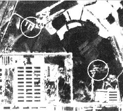 [252] | The manipulations on this picture are overly plentiful, such as, for example, an interpolated drawing of a group of inmates allegedly marching over the roof of a barracks! See also J.C. Ball, ibid., p. 42; Ball, "Air Photo Evidence" in: Ernst Gauss (ed.), op. cit. (note 22), pp. 271-284 (online: www.vho.org/GB/Books/dth/fndaerial.html). On the alleged original photographs, it may furthermore be seen that the spots on morgues 1 of both crematoria (II + III) are pointing in different directions; ibid. private communication by J.C. Ball. |