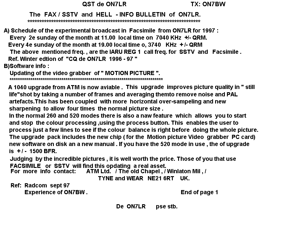 The FAX/SSTV and HELL - INFO BULLETIN of ON7LR