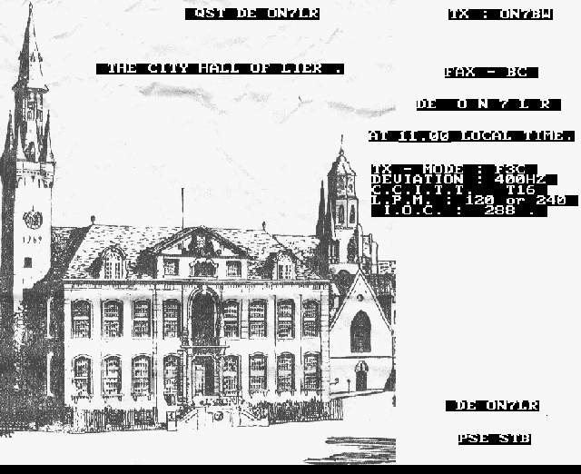 The transmissions contain usefull information about FAX/SSTV/HELL as well as pictures of the City of Lier, Belgium.