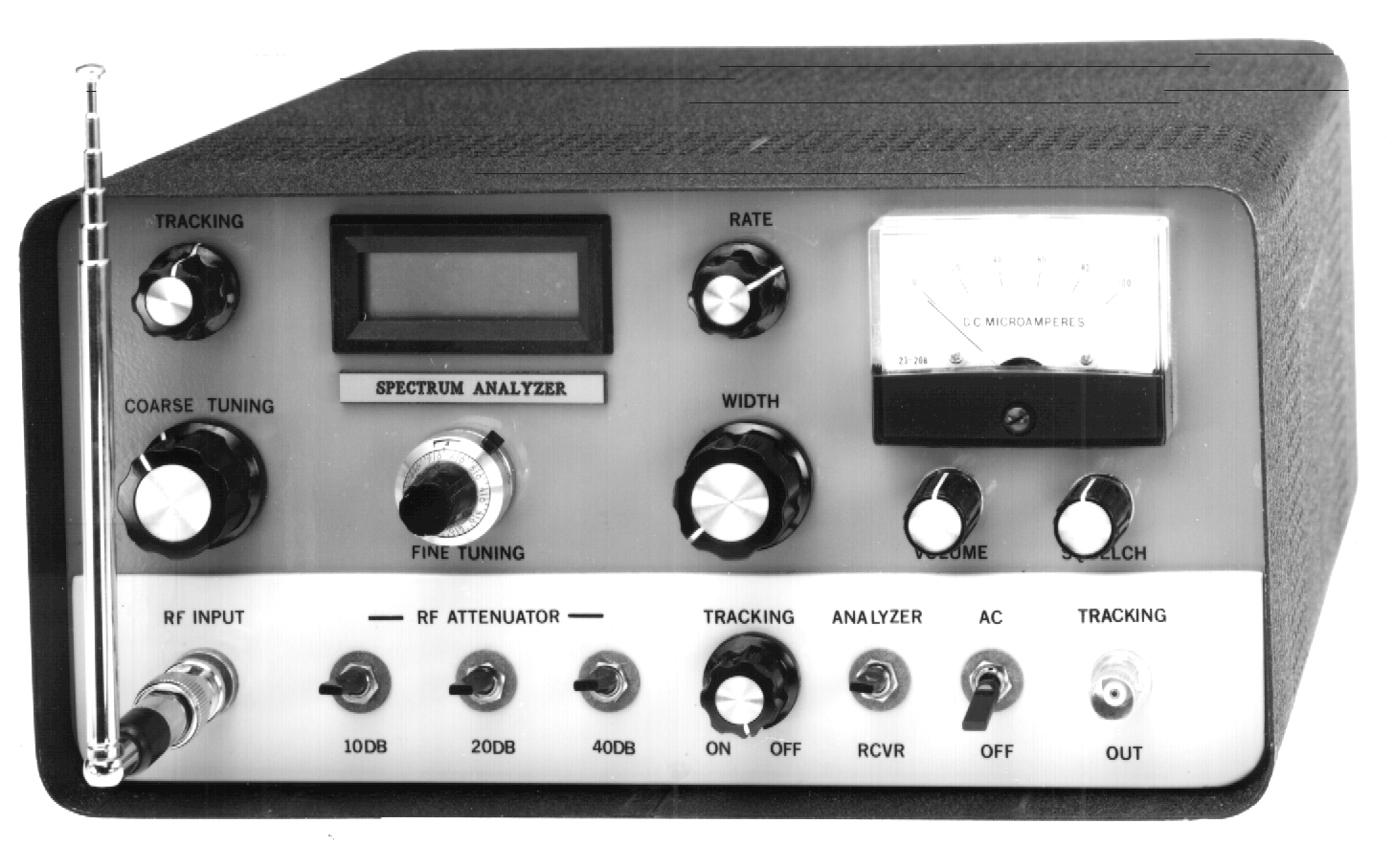 "Commercial spectrum analyzers are manufactured by Tektronix, Hewlett-Packard, Avcom and others, but prices range from $3000 to $10,000 and up, placing them beyond the affordability for most of us. Fortunately, a rather inventive gentleman named Murray Barlowe has come to our aid. A Ham Radio operator, WA2PZO, Murray runs a company called Science Workshop. He sells a kit consisting of two circuit boards and a modified cable TV tuner assembly which can be combined with any garden variety oscilloscope to produce an extremely versatile spectrum analyzer."