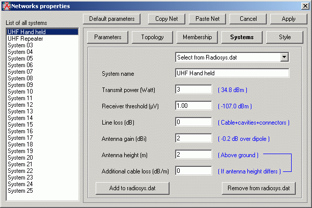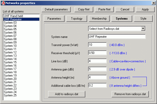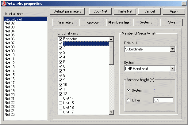 Proper parameters are set in order to form a UHF radio net where a repeater will be used.