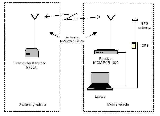 A calibrated receiver in the mobile vehicle was used to measure the Rx signal.