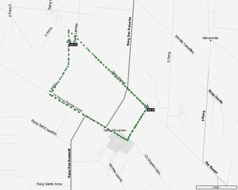 A vehicle was positionned at a fixed location and the other moved.