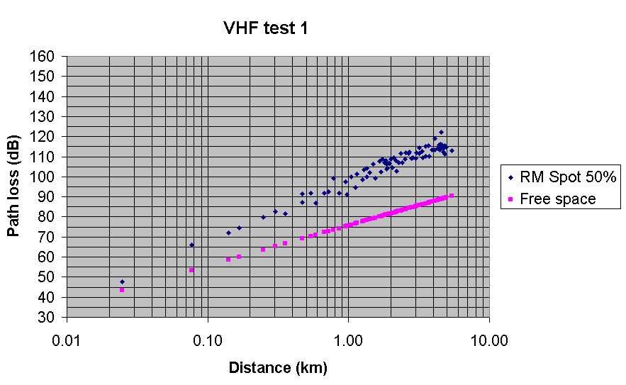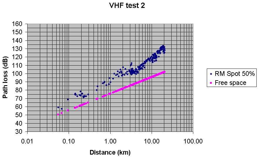 Test 2 VHF Radio Mobile predicted path loss with Spot at 50%