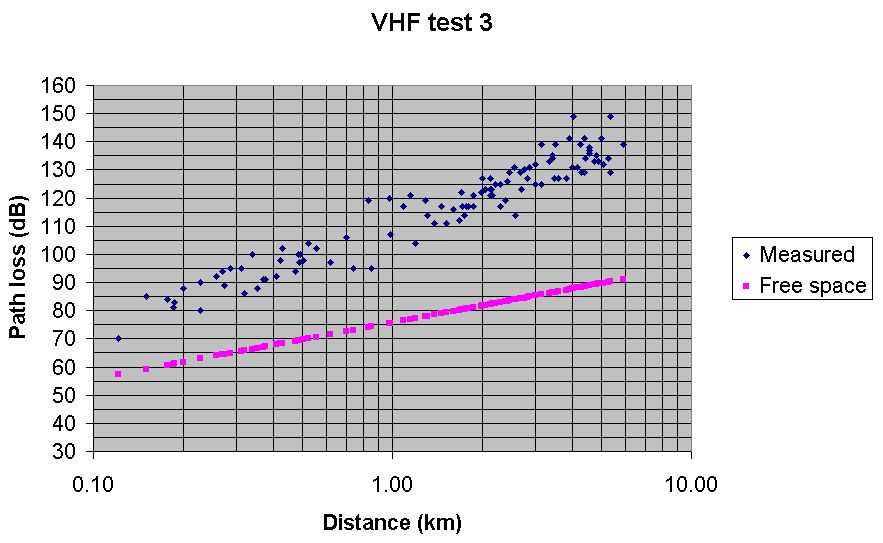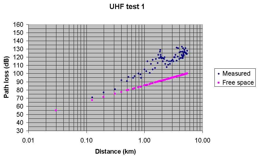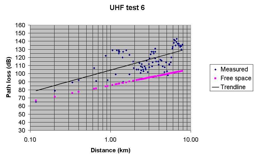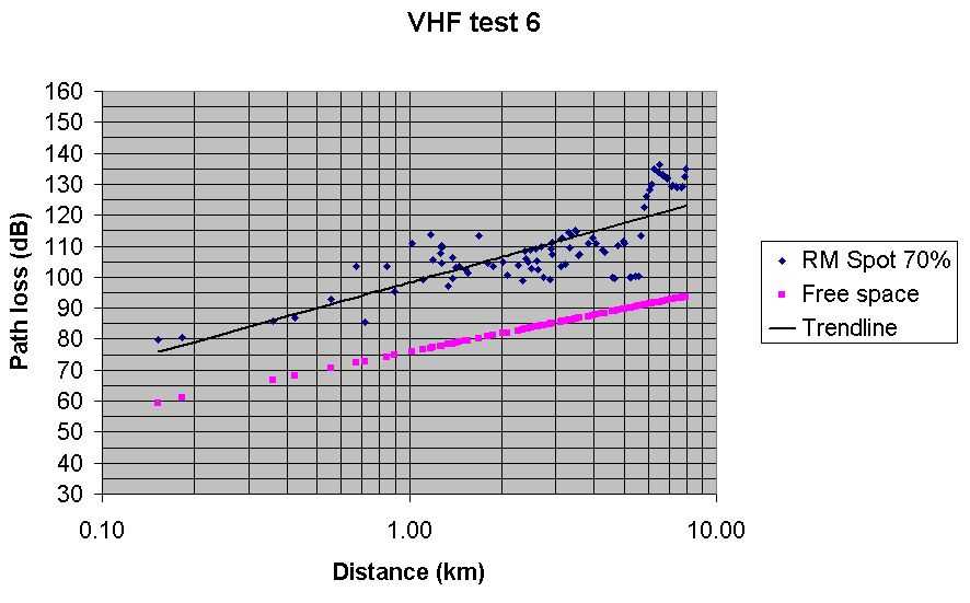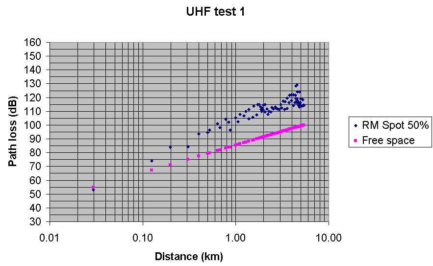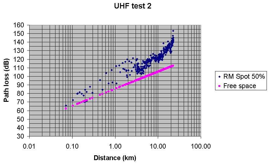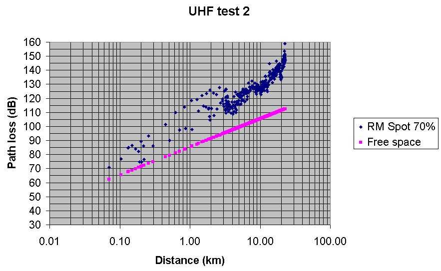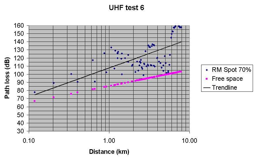 Test 6 UHF Radio Mobile predicted path loss with Spot at 70% Best fit, but a bit pessimistic