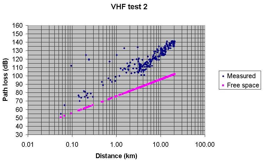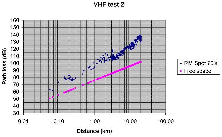 Test 2 VHF Radio Mobile predicted path loss with Spot at 70% Best fit