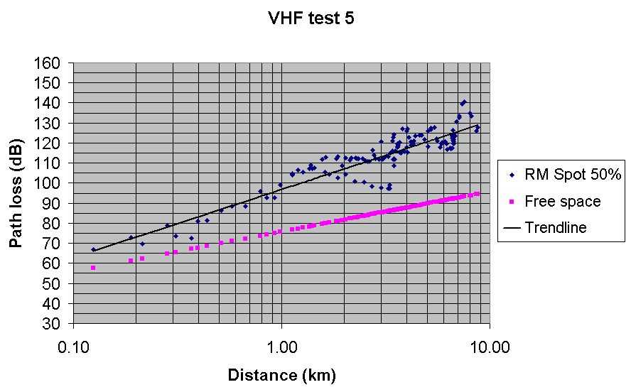 Test 5 VHF Radio Mobile predicted path loss with Spot at 50%