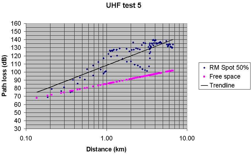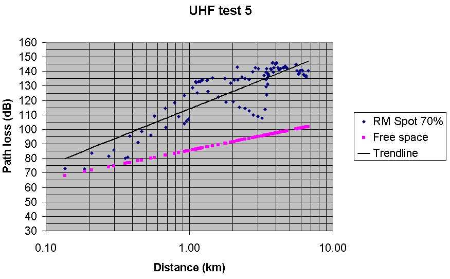 Test 5 UHF Radio Mobile predicted path loss with Spot at 70% Best fit