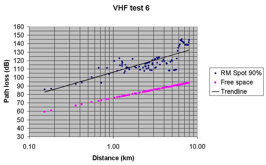 Test 6 VHF Radio Mobile predicted path loss with Spot at 90%