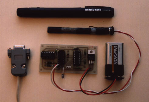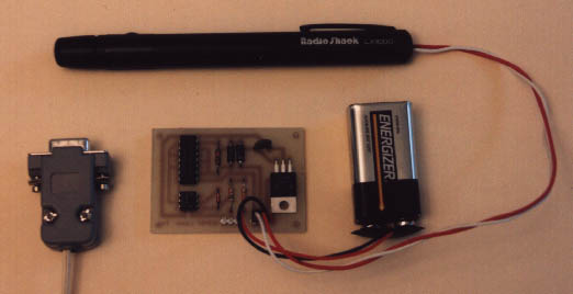 PC, and the 74LS05 is used to drive the laser diode inside the laser pointer.