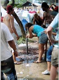 tanta gente tomando banho.. se é que se podia chamar de chuveiro,
