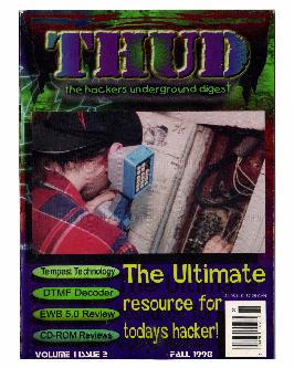 Welcome, ladiez, gentz, hackerz, phreakerz, wormz, and whachamacallitz. You're staring at the premier issue of THUD, The Hacker's Underground Digest. First, let me tell you what we're all about. Basically, we're a bunch of twits who figured we could make our own hacking magazine, and guess what! We did!! Cuz you're looking at it! But seriously though, we're not a bunch of people who think we can be better than anyone else. I, for one, hate people like that. I've been reading magz like 2600 and Blacklisted! 411 forever, and they're both really good. Each has it's strong points, as well as weaknesses. No publication is perfect, and I'm sure there's gonna be people out there who have their problems with THUD. Frankly, I'd be upset if people didn't write in spouting off shit about what's wrong with this, what's f*cked up there, and what not. That's called feedback.