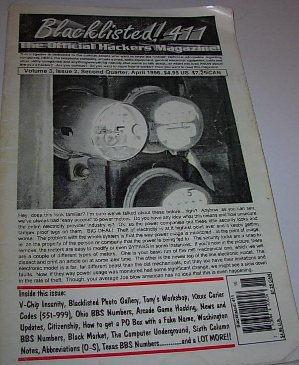 Blacklisted! 411 was a quarterly printed (ISSN: 1082-2216) hacking magazine by editors Zachary Blackstone and Alexander Tolstoy, and was similar in (print) format to 2600 Magazine. It was sold on store shelves and available via subscription.