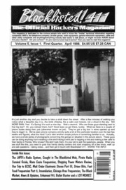 In the summer of 1993, one member (and the original editor-in-chief), Zachary Blackstone, felt it was time to revive the Blacklisted! 411 concept, but this time do it as a print magazine. It was extremely difficult to get started because the group was no more. He was the only one of the original group members remaining that had an interest in bringing the hacker group and magazine alive again. With some money, will to make it happen, and with the help of some top of the line (at the time) computer gear and page layout software, Blacklisted! 411 was reborn. Blacklisted! 411 Volume 1, Issue 1 was released in January 1994. Blacklisted! 411 was finally BACK. The Issues were released monthly and distribution was small. After a year passed, it was decided to try a quarterly format in an effort to increase distribution. During that year, Zachary managed to get in contact with many of the old group members and they are now active staff members once again.