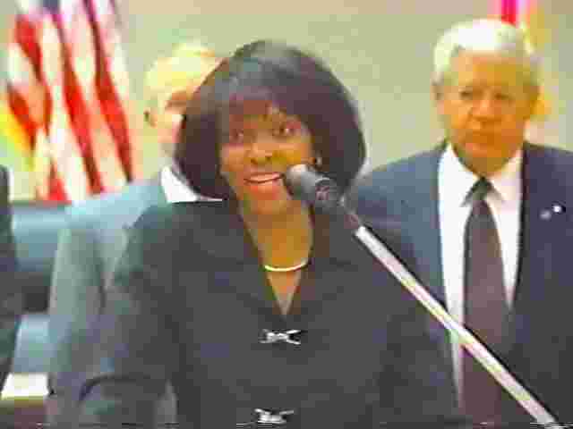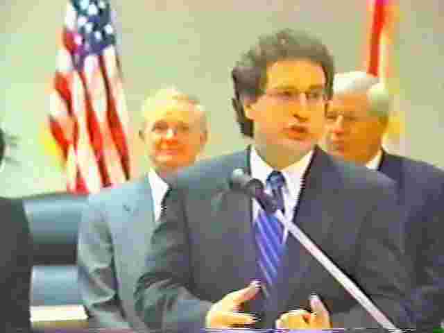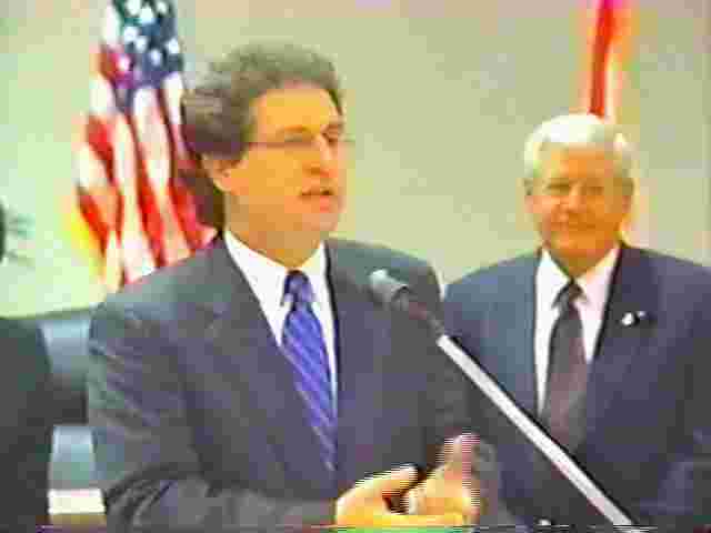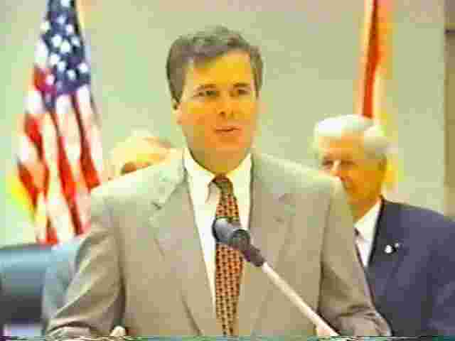 | Public Service Commissioner Julia Johnson was PSC Chairman at the time of the Area Code 321 Public Hearings. Here she introduces Chairman Garcia. | Current PSC Chairman Joe Garcia introduces Florida Governor Jeb Bush |