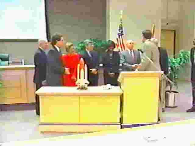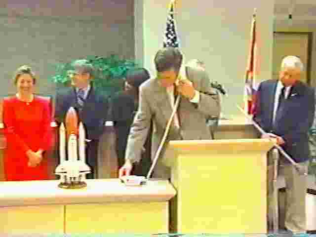 This page is made up of photos from the First Day of Service of Area Code 321 on 1999 November 01. Most are "screen shots" of video footage taken in Tallahassee FL at the Public Service Commission Hearing Room, or the Teleconference Center at the Kennedy Space Center. After all, the Countdown Capitol of the World deserves to have Area Code 321.