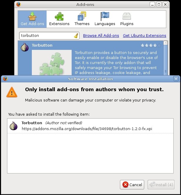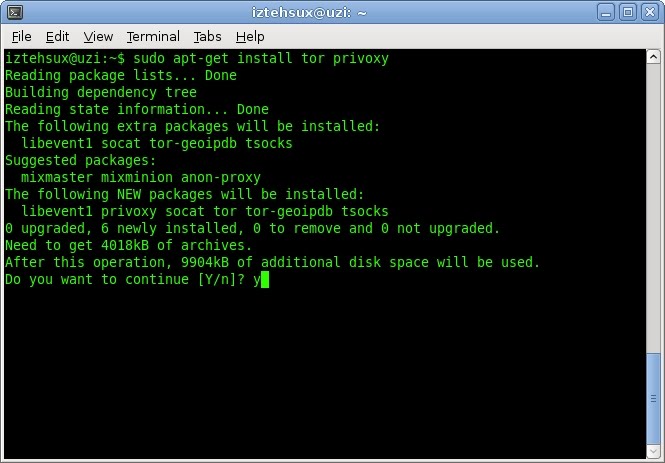 Step 1: Install TOR and privoxy. TOR is the anonymous network routing tool that will pipe your browsing connections. Privoxy is a web proxy that filters out content which may compromise your identity while surfing the internet. When these two programs are coupled together, you have a powerful duo that can protect your privacy and anonymously take your data where it needs to go. Once these two programs are installed, they will be pre-configured to run at boot time in the background. First you need to install these TOR and privoxy, then we will configure them. "sudo apt-get install tor privoxy" ### install the TOR and privoxy packages. Step 2: Configure privoxy to filter out web browsing information that may compromise our anonymity. Out of the box, using TOR as a client (instead of an exit node) requires no configuration. Configure privoxy so that it filters out any information that may possibly compromise our host. This can be done by modifying the privoxy configuration file. "sudo nano /etc/privoxy/config" ### edit the privoxy configuration file and make the necessary changes. Now that you have disabled logging for connections, you should disable logging of cookies that are transmitted and received while browsing anonymously. Comment out the "jarfile" cookie logging feature to prevent privoxy from logging anything that could compromise our identity. The final step in modifying the configuration file is to tell privoxy how connections should be forwarded to TOR. Privoxy will filter the content you are browsing, and TOR will route it through the anonymous network. At the very end of the privoxy configuration file, add a line which specifies which port to forward connections on. Go to the bottom of your privoxy configuration file and add a line which specifies how the connections should be routed after they are filtered. You will need to paste in "forward-socks4a / localhost:9050 ." into the bottom of your configuration file. Note: the "." must be included at the end. Privoxy is fully configured to filter your web browsing traffic, and TOR will securely and anonymously route it for you. By default, TOR listens for connections on port 9050. Everything has been setup to pipe your traffic anonymously. Restart the privoxy service to complete our anonymous setup. "/etc/init.d/privoxy restart" ### restarts the privoxy service, forcing our modified configuration file to take effect. Step 3: Install the Firefox "torbutton" browser extension to utilize our anonymous browsing service. TOR and privoxy have both been installed. You have configured privoxy to filter traffic that may compromise your identity. The final step is to install the Firefox "torbutton" extension which gives you flexibility to browse networks using TOR at your discretion. Go to your "Tools" menu in Firefox, and search for "torbutton" to install this add-on feature. You will need to restart Firefox in order to have this add-on to take effect. Restart Firefox and you will notice in the lower right hand corner of your browser that you have the "torbutton" installed. Click "Tor Disabled" to have the TOR plugin take effect. Now try browing to ensure your IP address does not resolve to where your actual location is. You might try going to IP2Location and having a geographic IP location lookup performed. If you followed the steps correctly, your connection should be routed through the TOR network and will end up resolving to a totally different IP than you are originating from. Click Death Squad isn't from Germany, we represent Portland Oregon! As you can see, TOR and privoxy have routed our connection through an exit node which ends in Germany. This secures our connection by piping it through multiple encrypted connections. Now that you have TOR and privoxy up and running, you can browse the net securely and safely without fear of being profiled by your ISP or being censored. Always remember to check your logfiles, watch your back and stay safe. |